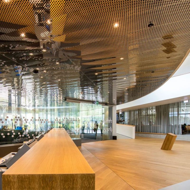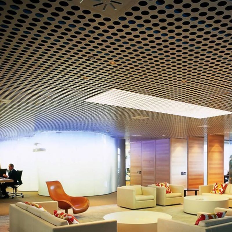 越來越多的商業和零售建筑更喜歡穿孔金屬板用于天花板裝飾。 面板可以模塊化設計,便于安裝和拆卸。 這可以避免更換瓷磚這種通常由適度管道泄漏引起的情況發生。 眾所周知,沖孔板有多種材質選擇和圖案設計。 除了上述優勢外,我們還提供必要的技術建議,讓您的想法成真。